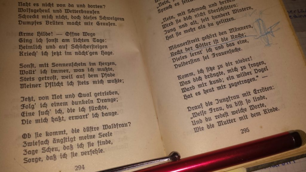 Lampensschirm kam von der väterl. Oma und war aus Stoff. Das Buch auch. Die Lampe wurde gerne gelesen, solange es die JLS hergab.